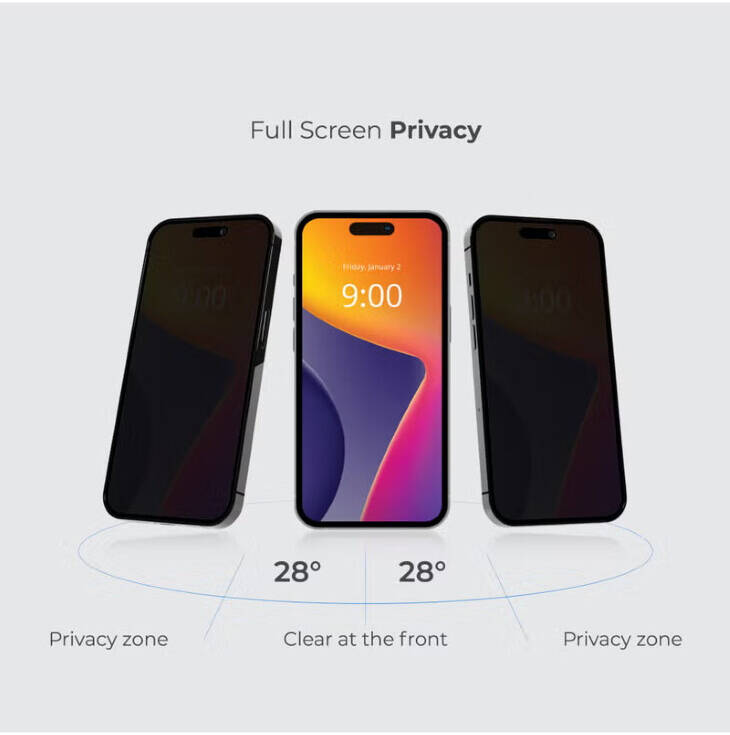 Protect your personal information with the Mosu 28° Anti-Peeping Privacy Tempered Glass. Advanced privacy technology ensures that your screen is visible only when viewed directly from the front and becomes dark at side angles beyond 28 degrees. Ideal for users in public places, offices, or for frequent travelers who value privacy.